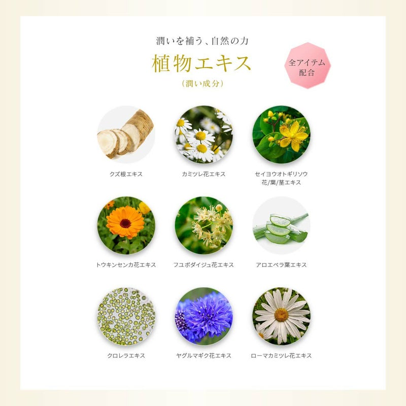 ホホバ種子油が肌を乾燥からやさしく守り、皮脂バランスも整えます。角層に浸透し、弾力に満ちたハリ肌に導きます。