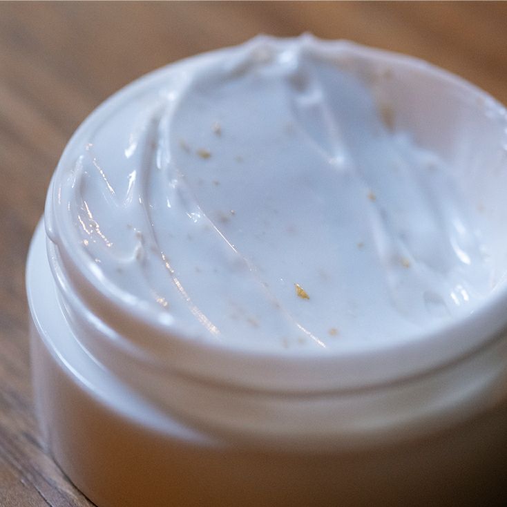 水、トリ(カプリル酸/カプリン酸)グリセリル、イソステアリン酸ヘキシルデシル、BG、グリセリン、ジメチコン、ペンチレングリコール、ラフィノース、カプリリルグリコール、ヒアルロン酸Na、グリチルリチン酸2K、ウメ果実エキス、金、トウキンセンカ花エキス、アルニカ花エキス、セイヨウノコギリソウエキス、カミツレ花エキス、セイヨウオトギリソウ花/葉/茎エキス、ゼニアオイ花エキス、フユボダイジュ花エキス、セージ葉エキス、スギナエキス、ラウロイルグルタミン酸ジ(フィトステリル/オクチルドデシル)、ステアリン酸グリセリル(SE)、セタノール、水添パーム油、トリセテアレス-4リン酸、ジメチコノール、酢酸トコフェロール、(アクリロイルジメチルタウリンアンモニウム/VP)コポリマー、イソステアリン酸PEG-20ソルビタン、1,2-ヘキサンジオール、エチルヘキシルグリセリン、フェノキシエタノール、香料