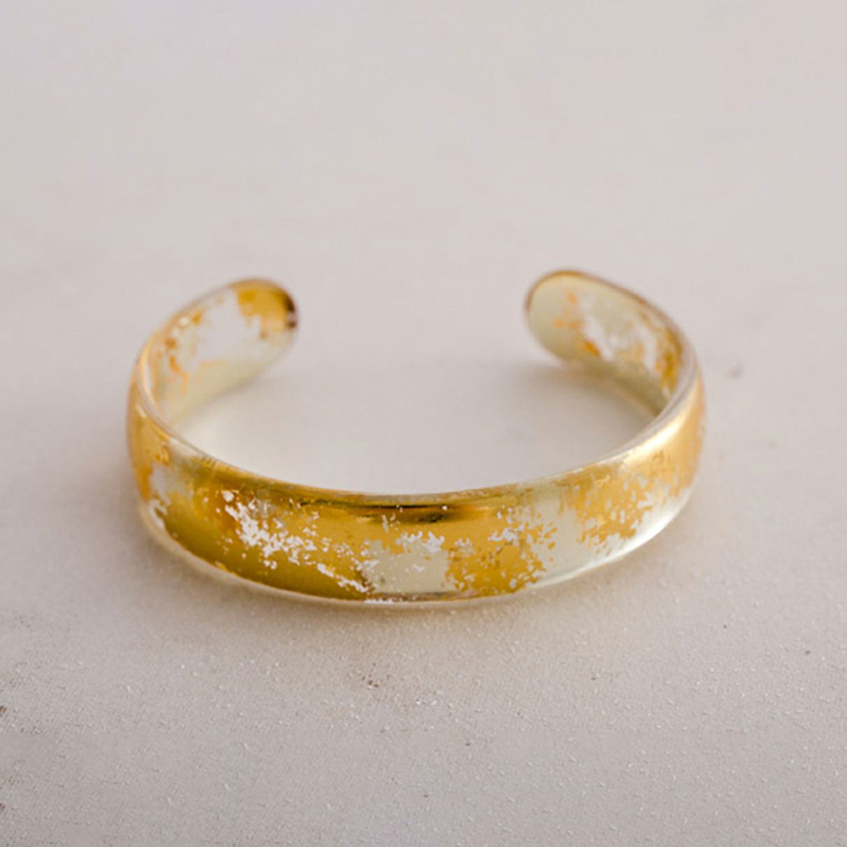 Mサイズは、1.4cm幅のすっきりとした細身のデザイン。ブレスレットや定番「アクリルバングル」との重ね付けもおすすめです。