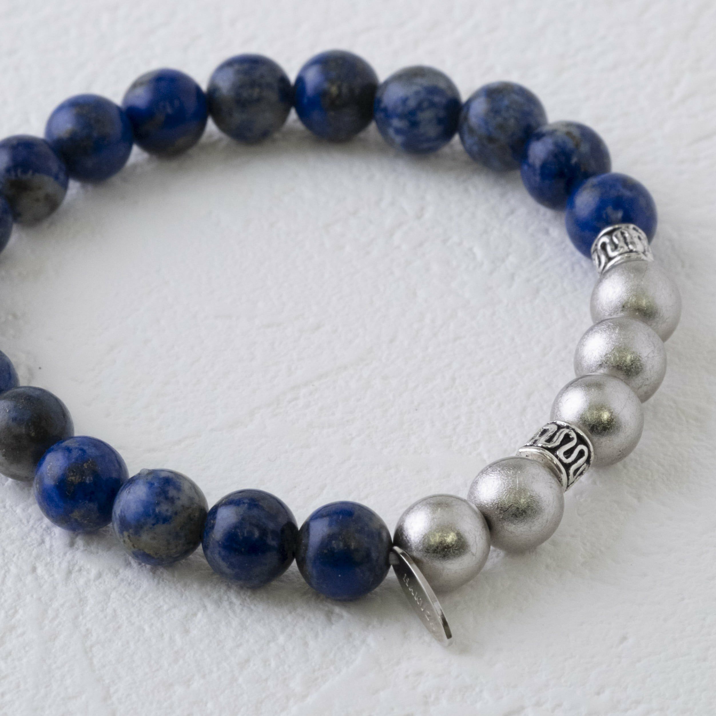 プラチナ箔(純プラチナ100%)、アクリル、ラピスラズリ、亜鉛合金ロンデル(銀古美メッキ)、ポリウレタンゴム