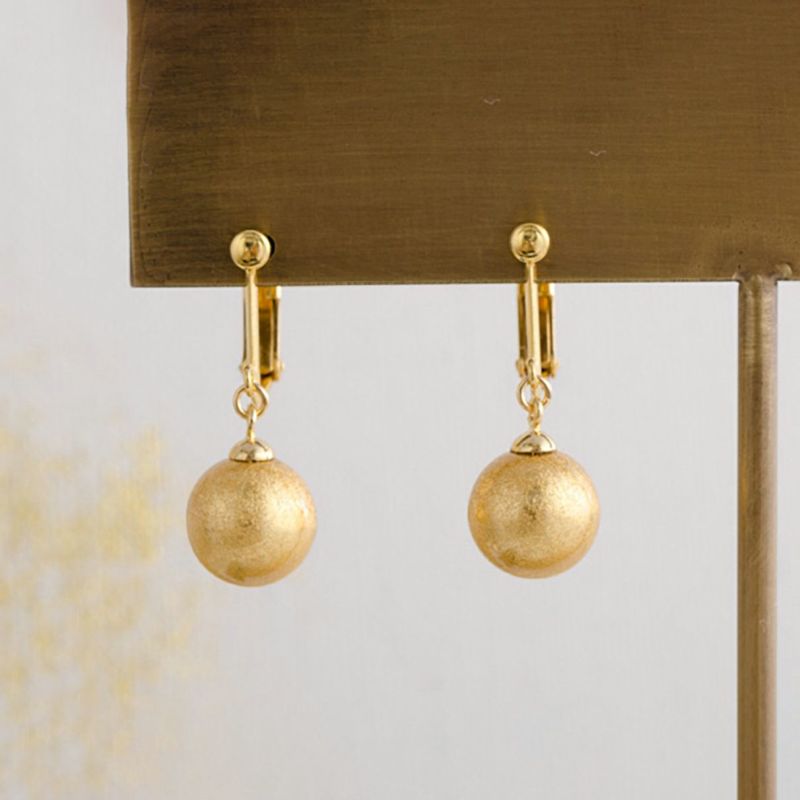 箔珠シリーズのネックレスとセットアップすると、ワンランク上の完成度の高い装いが出来上がります。イヤリング金具は上質なSV925(ゴールドメッキ)を使用した、使いやすいネジバネ式です。