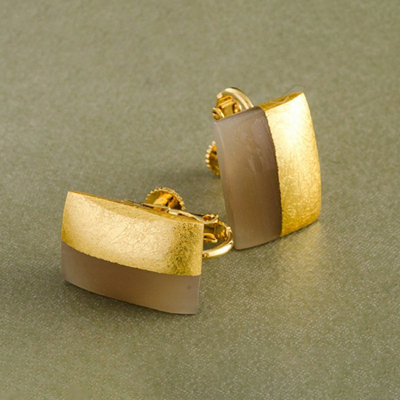 金箔四号色(純金94.438%、純銀4.901%、純銅0.661%)、水牛角、銅イヤリング金具(ゴールドメッキ)