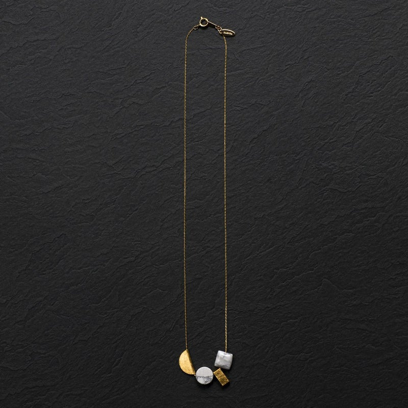 純金プラチナ箔・永遠色(純金99%、純プラチナ1%)、真鍮、ハウライト(マグネサイト)、真鍮チェーン(ゴールドメッキ)、真鍮金具(ゴールドメッキ)