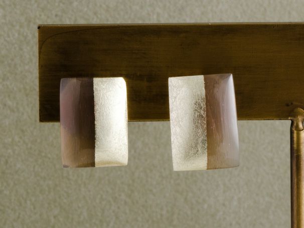金箔定色(純金58.824%、純銀41.176%)、水牛角、チタンピアス金具(皿部分は銅に代用ロジウムメッキ。針部分はチタン)、真鍮キャッチ(代用ロジウムメッキ/内側ゴム)