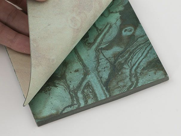 商品説明箔と和紙が交互に重なっています。箔の束を白色の包装紙と帯で包む伝統的なパッケージ形態です。表面に種類、色、入り枚数を記載しています。