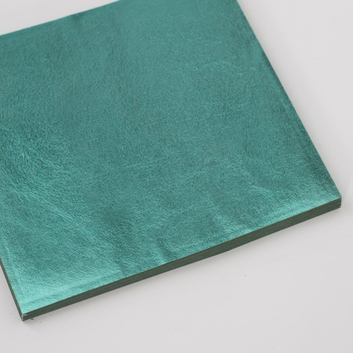 箔の束を白色の包装紙と帯で包む伝統的なパッケージ形態です。表面に種類、色、入り枚数を記載しています。