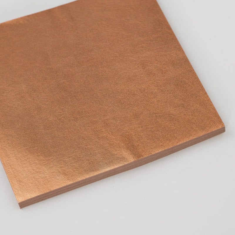 箔の束を白色の包装紙と帯で包む伝統的なパッケージ形態です。表面に種類、色、入り枚数を記載しています。