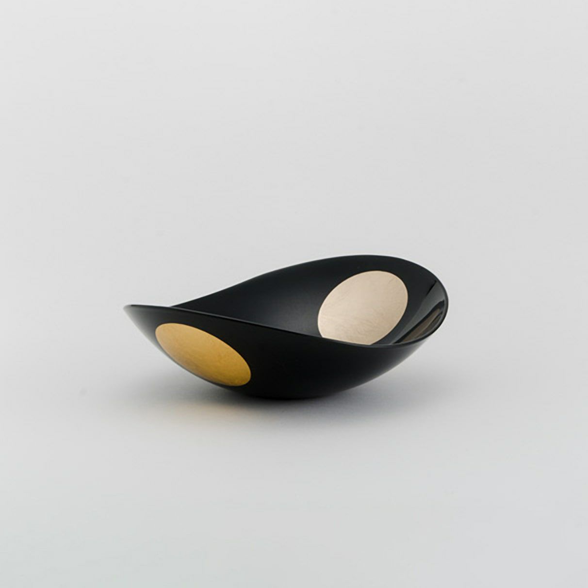 洗練された形の美しいオーバルボウルに純金プラチナ箔2色を大胆に配しました。漆塗のようにも見える、質感の高いウレタン塗装の樹脂製で、箔もコーティングしてありますので、扱いやすく気軽に普段使いいただける美しい器です。