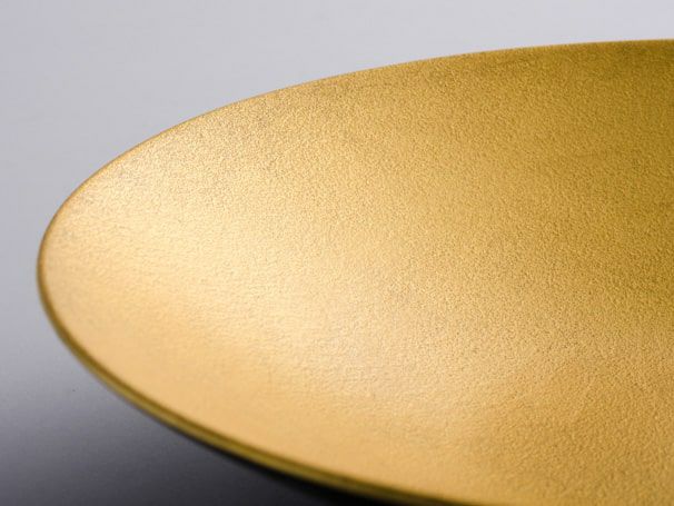 山中漆器の高度なろくろ技術で挽かれた、栓(せん)の木の器の内側に、木目がやわらかく浮き出す独特のテクスチャーをつくり、全面を箔で覆いました。下地のテクスチャーと艶消し仕様のコーティングで、オリジナリティあふれる美しい陰影をデザインした器です。