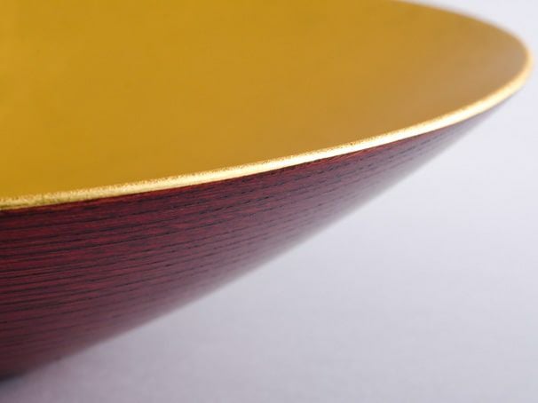 外側は木目を活かした拭き漆仕上げ。内側の金箔と外側の漆、日本の伝統的な技のコントラストも魅力的な器は、食器としてはもちろん、インテリアとしても存在感のある逸品です。